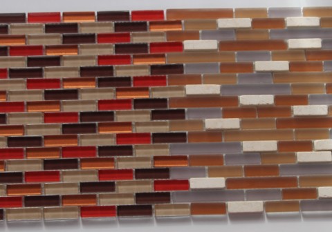 I received a new batch of the tile product I sell on ebay (seller id austinmodhouse). the blend on the right above has stone mixed in with the glass (the cream colored rectangles are stone). I really like these but my taste has often proven too personal for volume sales. the most popular tile I sell is this , not my favorite but I guess it is neutral and brown enough for the mass market.