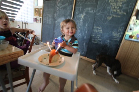 the baby has survived two years on earth. had some friends over for asian food feast.