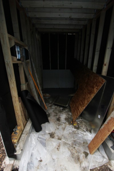 behind this door we find an 18 amp-hour sealed gel-cell battery, and a 12 volt fuse box. the switches are for various LED lighting fixtures and there is even a power point to recharge an iphone or plug in a dvd player or electric blanket for chilly evenings. the next step will involve a 15 watt solar panel to keep the battery charged.