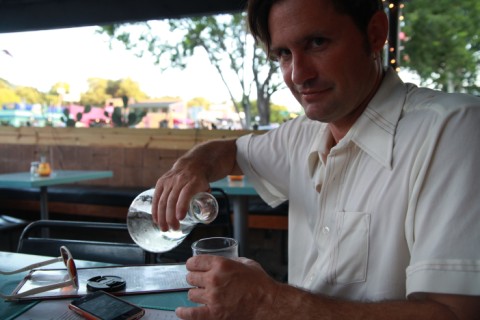 water comes in beakers at snack bar. fun place with a great location. I do appreciate small menus biut theirs is not that interesting. kat did enjoy the fish tacos. also, they only have beer/wine lic here, something to note if you have a taste for cocktails.