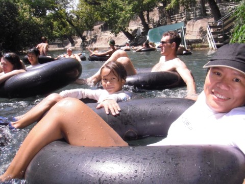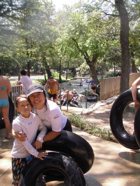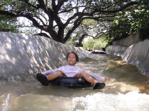 joyce (above) was my hero earlier in the day. my driver's lic. had ejected from my pocket. (I lost my DL on the same exact ride two years ago). this time, joyce from taiwan saved it! I moved it from my side cargo pocket to the back pocket that had a more secure buttoned flap to keep it safe. and there it stayed until the very last ride... joyce wasn't around to save me the second time. spent two hrs at the DPS (dmv) getting a replacement today. anyhow, back to the tubing-floating-sliding in the texas hill country.