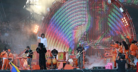 lips frontman wayne did a brief tour in his space bubble after urging us to not push each other and love one another. a girl standing near to me explained "when the lips sing yoshimi, it makes me want to hump on everything and anything". I'm not sure that was what he was talking about, or maybe it was....