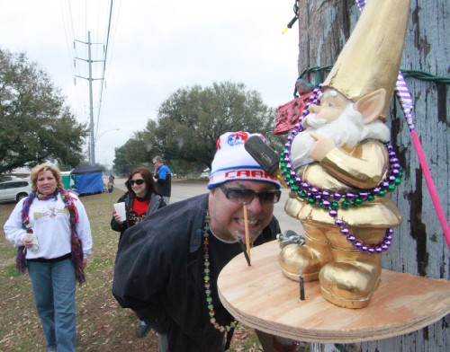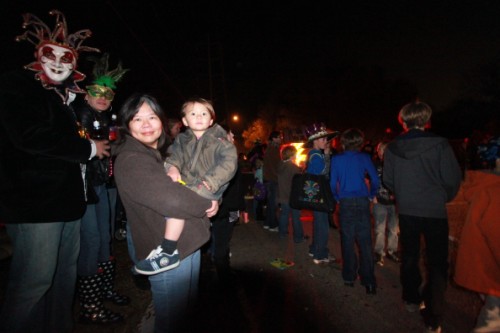 it got cold real quick once our fire was put out. and out of the darkness, scot waddled up dragging his cooler down the street and just a few beads.