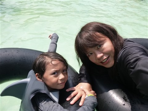 #2 son has requested thirteen additional schlitterbahn trips into his summer. He later agreed that ten would be ok... I'll try to make it happen. (big wave behind about to hit us in the pic above)