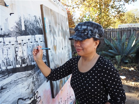 Kat and I took the two older kids to roam the East side of Austin. It was a rare time that the daughter did not have homework and was happy to go visit various artist studios for EAST.