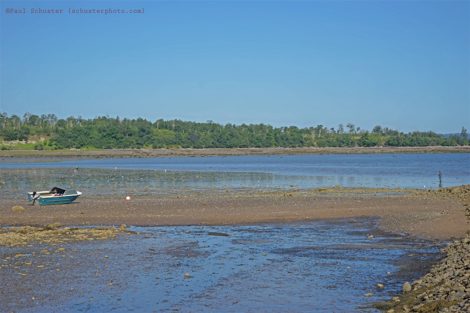 When the tide is out, the boats rest on the ocean floor. It's muddy at low tide. Local clam lovers may come walk around in the mud in search of dinner (below).
