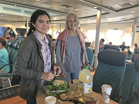 We enjoyed the ferry crossing. We had a big picnic on the boat and played board games. The high speed ocean ferry was operating on three of its four engines. The crossing took 6 and a half hours. We enjoyed the trip and caught a nice sunset.