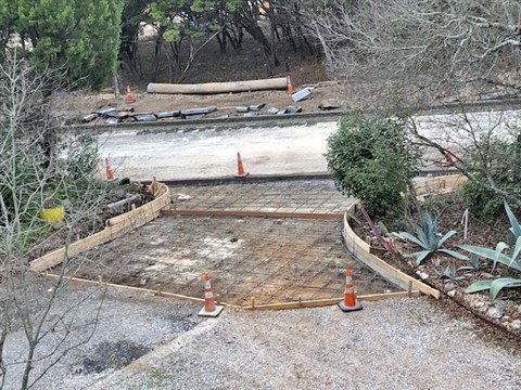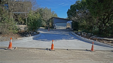 The driveway didn't mate up with the new lowered street level. So they removed the old driveway and regraded it.