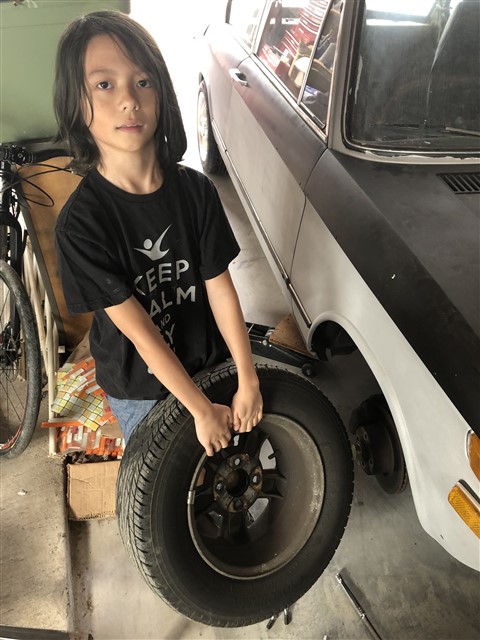 #2 son said he'd like to learn. Lucky for him it was new wheel week for the vintage BMW.